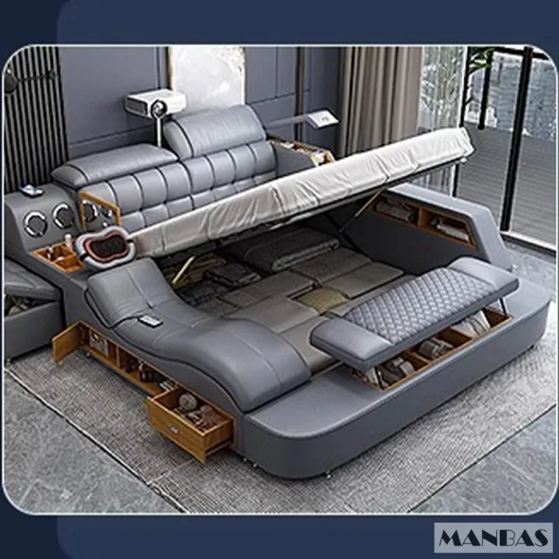 Linlamlim Luxury King Size Bed with Smart Technology and Genuine Leather / Multifunctional Ultimate Beds / Massage Marriage Bed