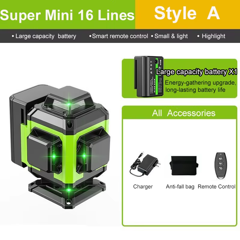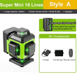 Mini 3D/4D Laser Level 12/16Lines Green Lines 360 Self-Leveling Horizontal and Vertical Super Powerful Home Laser Level