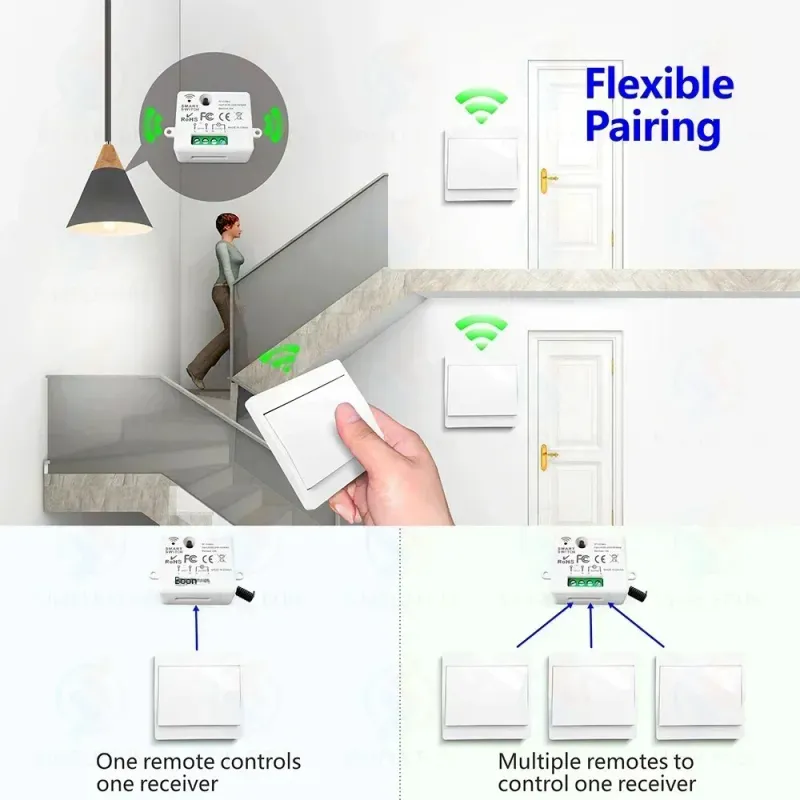 The receiver can be controlled by multiple wireless panels without the need for a network, making it easy to control your devices from different locations,Smarter than traditional control, Simpler and suitable for the elderly.