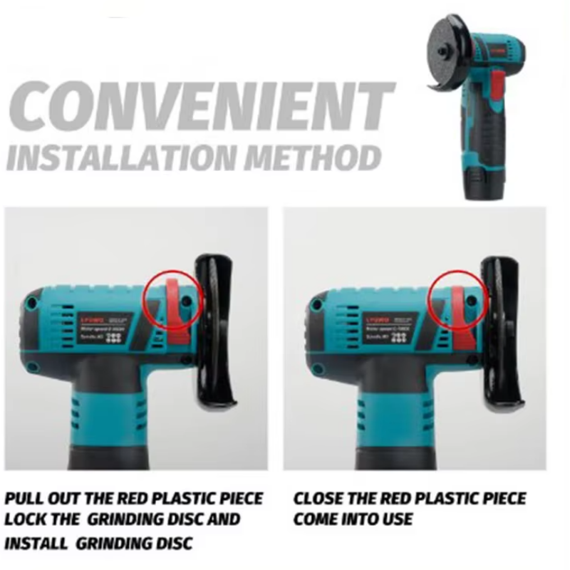 1.The whole machine is small in size (refer to the diagram for the exact size), and the grip fits the palm of your hand, so it is stress-free to operate with one hand. Whether it is working in a narrow space (such as grinding cabinet corners and furniture gaps) or long-term handheld construction, it can effectively reduce the burden on the wrist, saying goodbye to the bulkiness and fatigue of traditional large angle grinders. The elderly and women can also control it easily