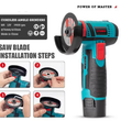 2.After matching the saw blade, it can quickly cut a variety of materials such as metal (such as angle steel, scrap iron), wood (old furniture renovation, wood cutting), plastic (PVC pipes, plastic boards), etc. The high-speed rotating saw blade is matched with the precise positioning design, and the cutting surface is flat and smooth, without the need for secondary grinding, and can easily complete tasks such as shelf production, pipeline renovation, and waste item disassembly.