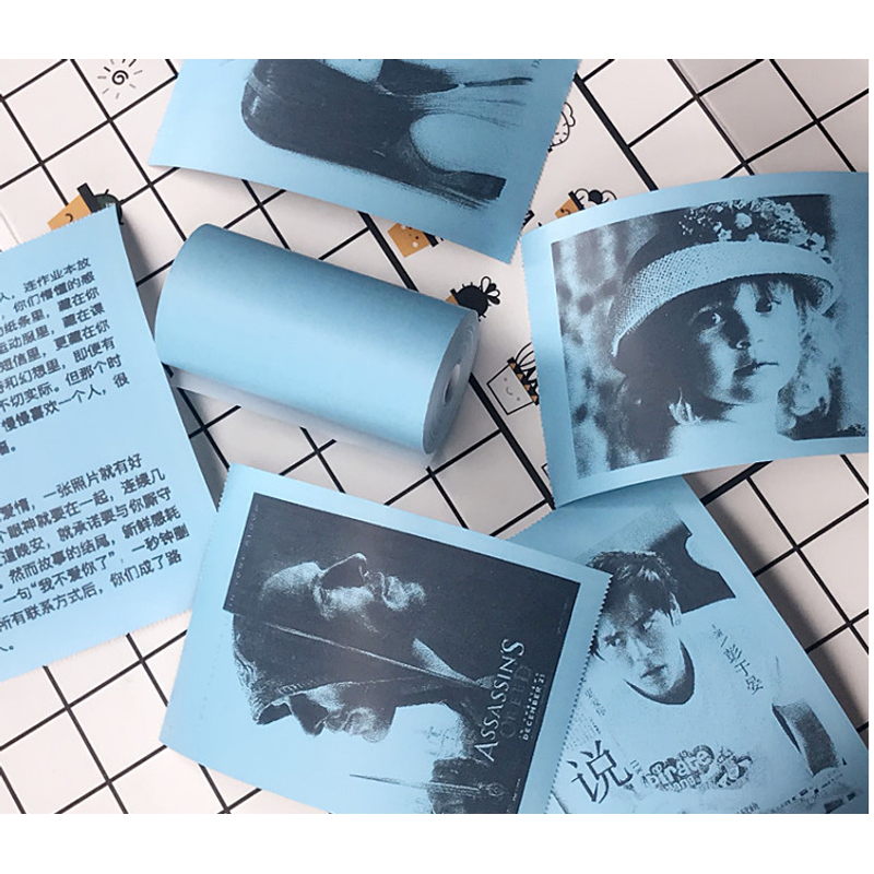 Mini Bliuetooth Wireless Thermal Printer Paper Sticker Label Printer 3pcs thermal paper Blue