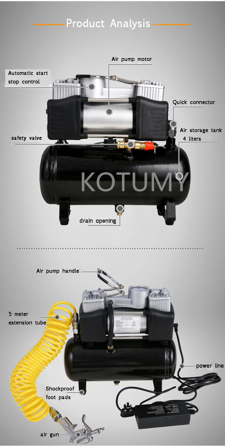 Mini Car Tire Inflator Pump Air Reservoir for Car Painting Small Air Compressor Portable Oil-free Silent Air Pump 3L/4L