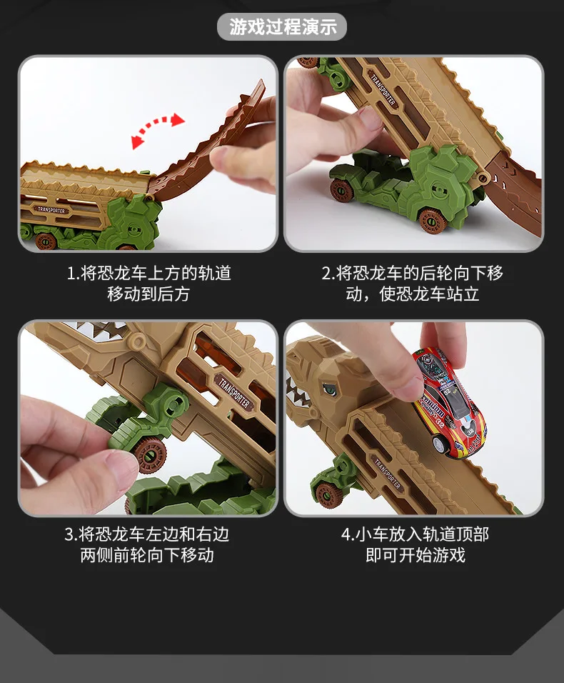 Mini City Dinosaur Ultimate Hauler Track Toy Transport Morphed Track Ejection Model Alloy Car Toddler Toy Gift for Kid Boy