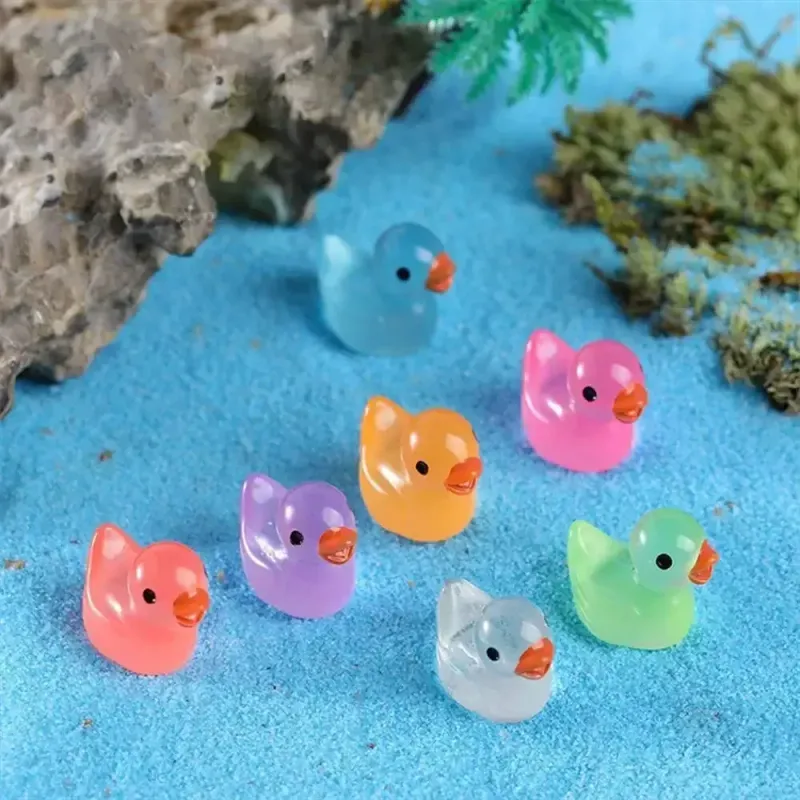 Mini Duck Glow At Night Miniature Figurines Cute Fairy Garden Decoration Luminous Swan Duck Desk Ornaments Dollhouse Crafts DIY
