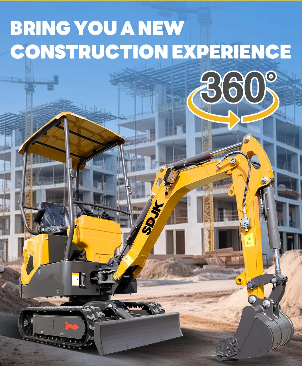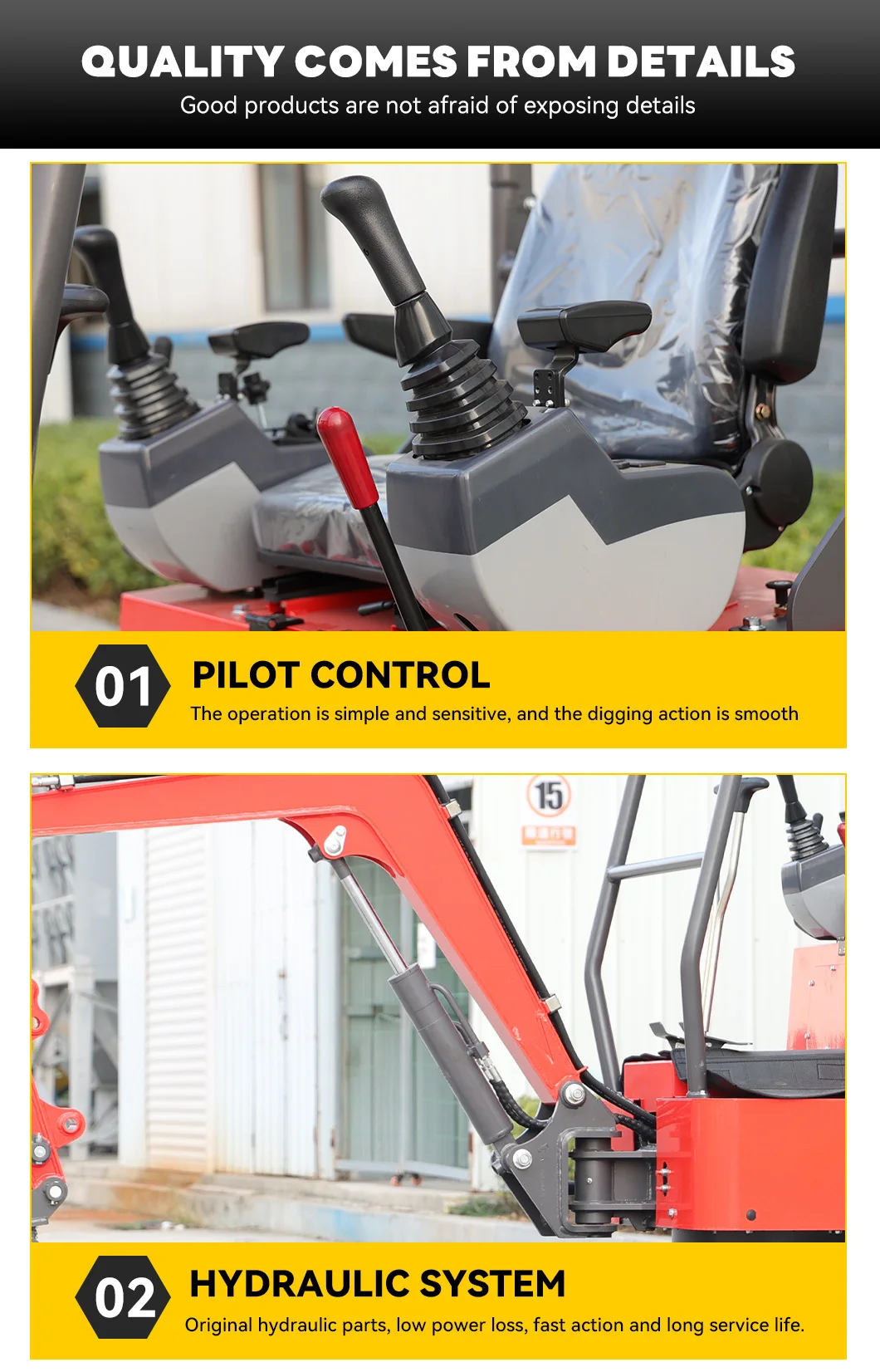 2. More features on the excavator: swing arm, pilot joystick