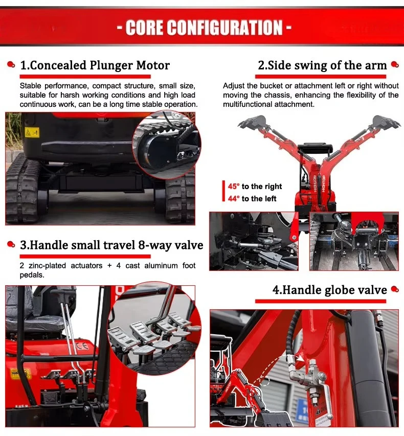 Mini Excavator Fully Hydraulic Mini Crawler With Swing Arm, Hydraulic Operating Lever, Cab,accessories