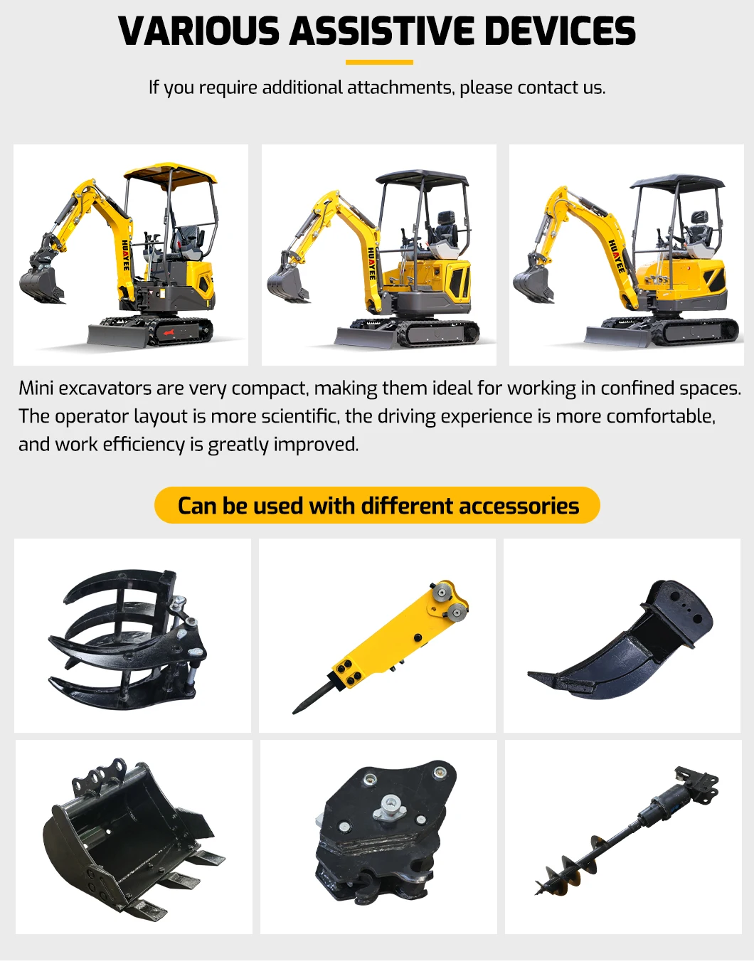 There are many accessories for our mini excavators to choose from to meet your more