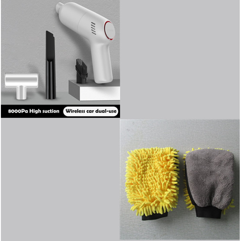 Mini Fashion Car High-Power Car Vacuum Cleaner White with Yellow M gloves