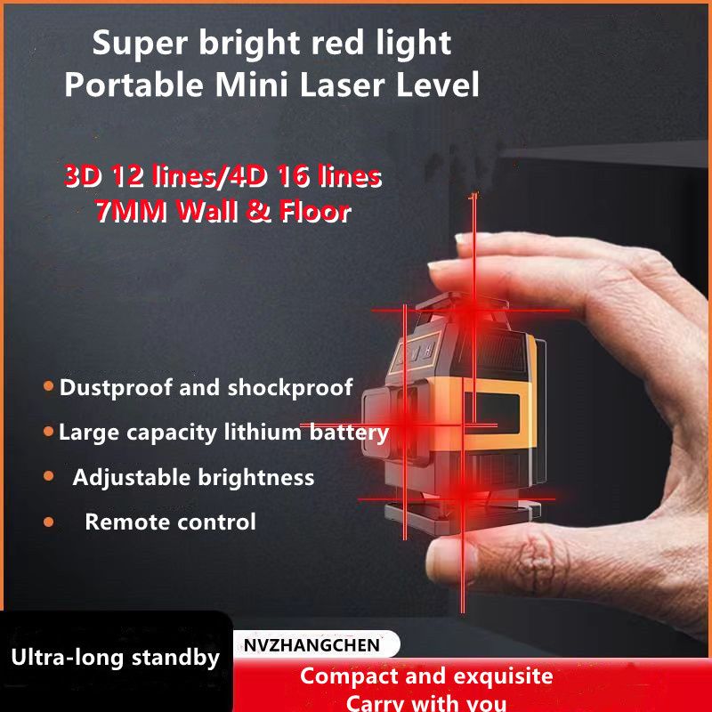 Mini Laser Level 12/16 Lines 3D/4D Red Lines Self-Leveling 360 Horizontal Vertical Cross Super Powerful Red Beams Laser Level