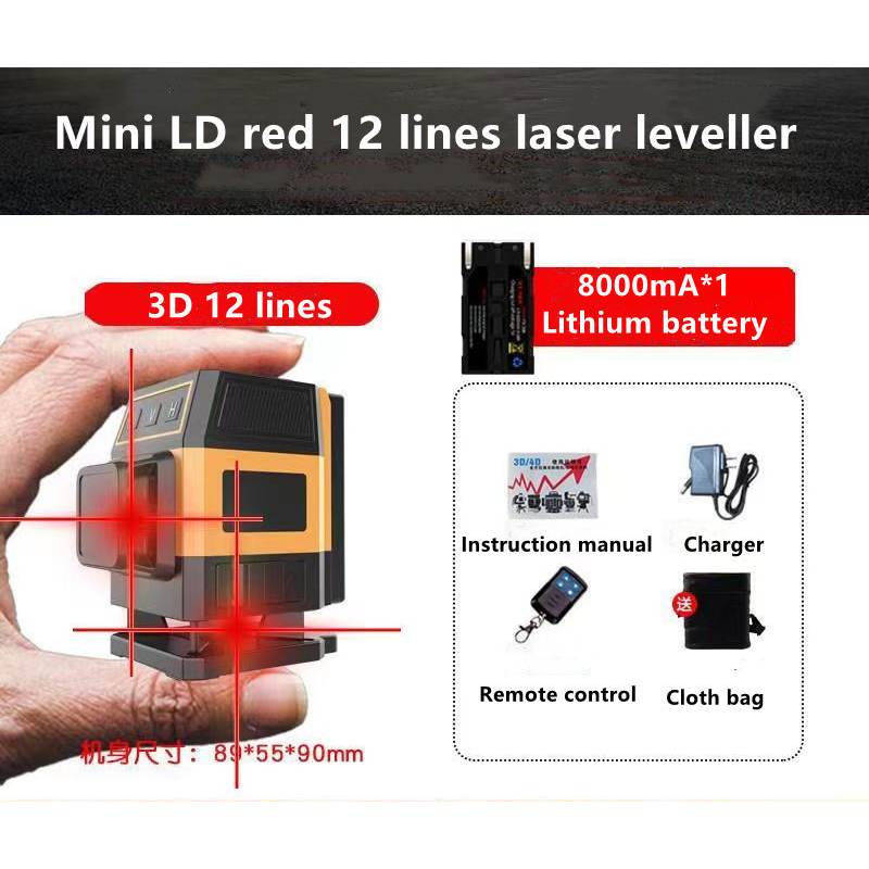 Mini Laser Level 12/16 Lines 3D/4D Red Lines Self-Leveling 360 Horizontal Vertical Cross Super Powerful Red Beams Laser Level