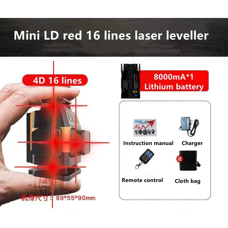 Mini Laser Level 12/16 Lines 3D/4D Red Lines Self-Leveling 360 Horizontal Vertical Cross Super Powerful Red Beams Laser Level