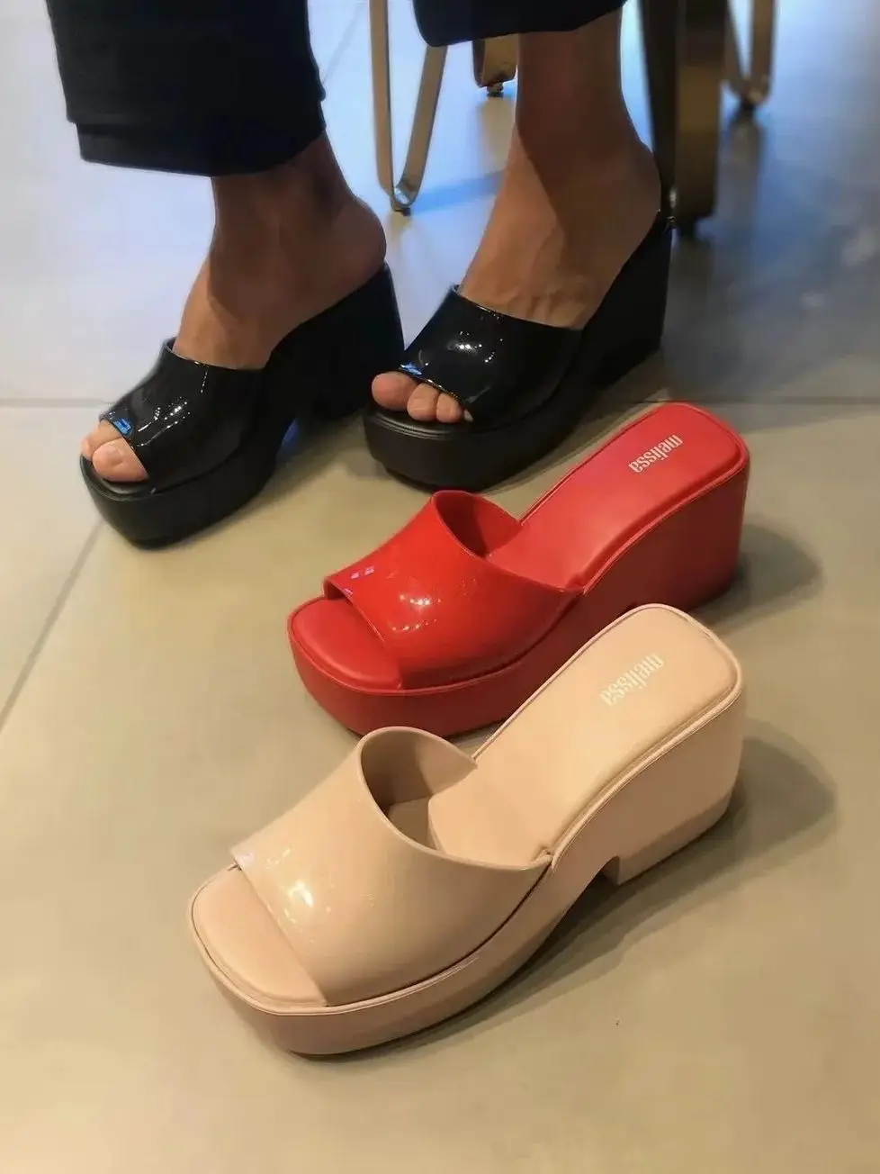 Mini Melissa Sandal Summe Women Slippers Wedges Platform Beach Flip Flops Trend High Heels Ladies Shoes Pumps Thick Slides Mujer
