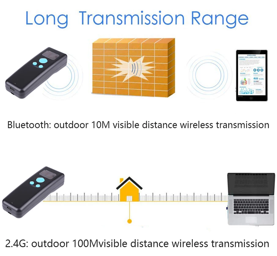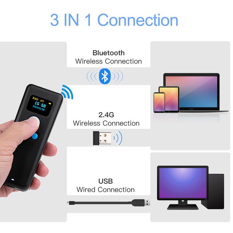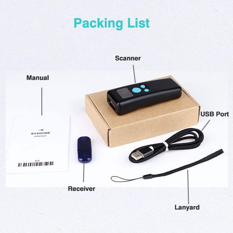 Mini Pocket Barcode Scanner USB Wired Bluetooth 2.4G Wireless 1D 2D QR PDF417 Bar code for iPad iPhone Android Tablets PC