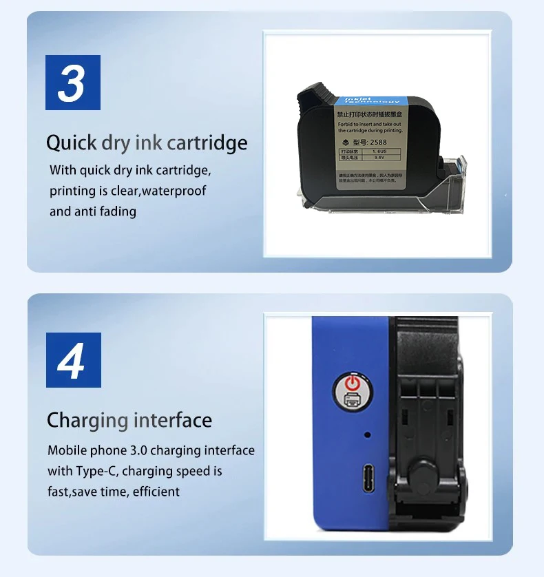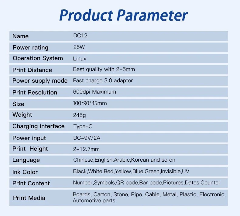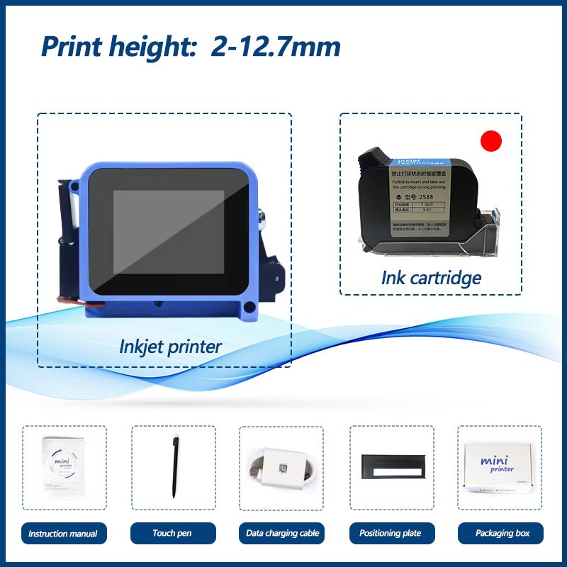 Mini Portable Handheld Inkjet QR Barcode Printer 12.7mm Batch Date Number Logo Expiry Coding Machine Supports 28 Languages