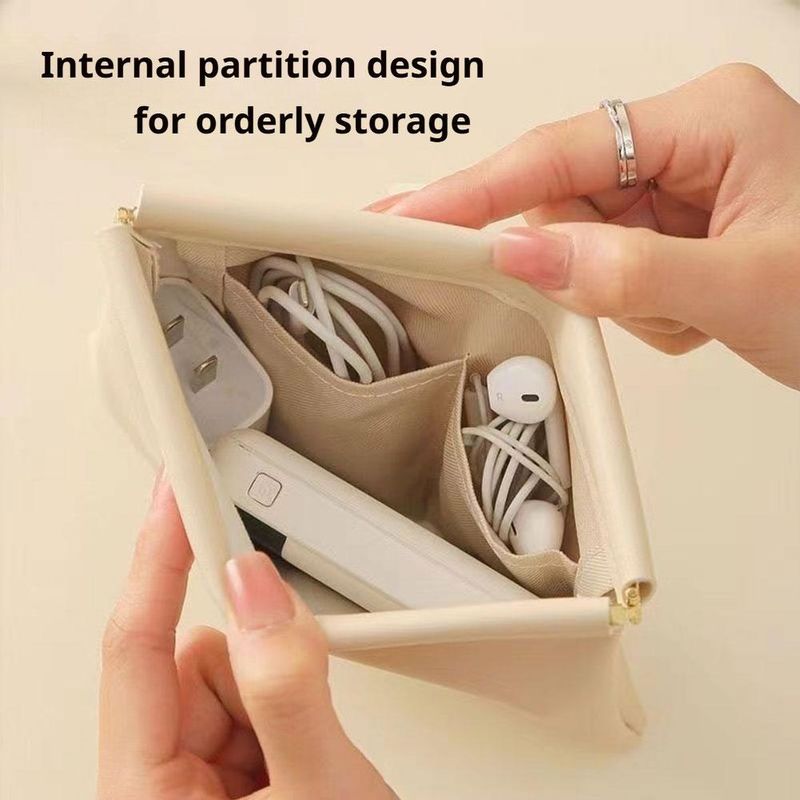 Mini Portable PU Storage Bag - Automatic Closure Bullet Pouch Wired Headphone Case Lipstick Makeup Coin Purse Accessory