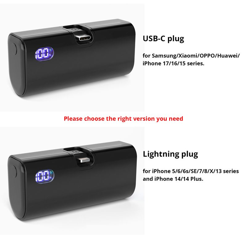 Foldable USB-C or Lightning connector, lightweight and compact design, the size is almost the same as the size of lipstick, the net weight is only 99g.