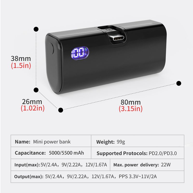 Real fast charging power bank charger, 22 W maximum power output, 5000mAh capacity, effectively address emergency electricity scenarios.