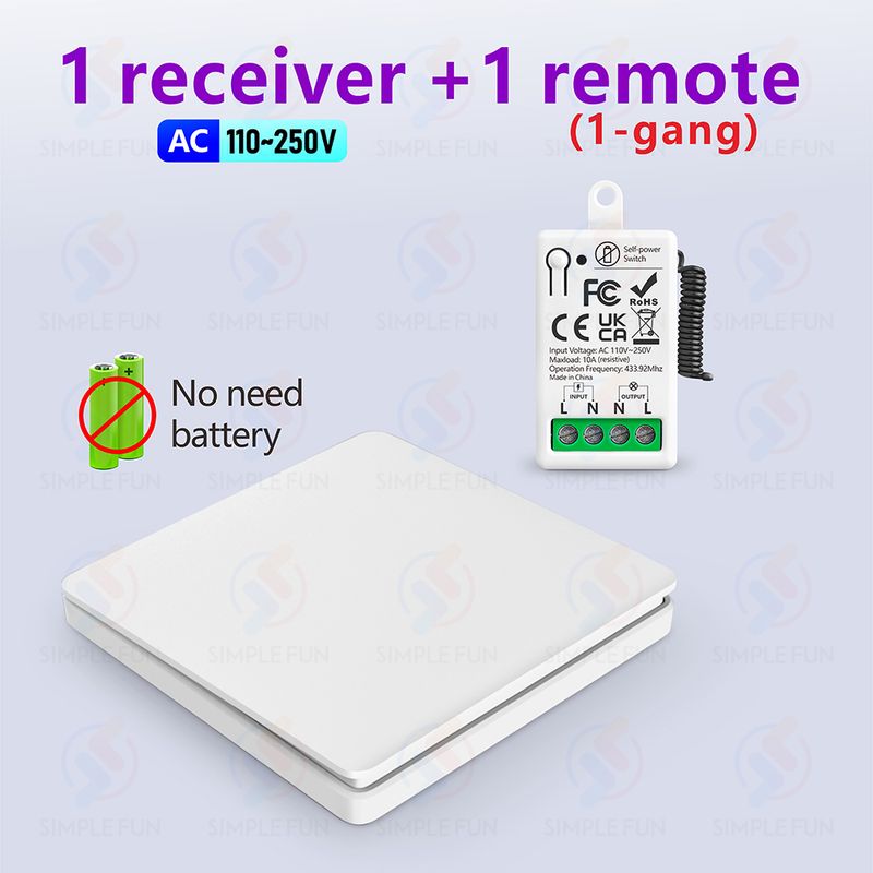 Multiple sets of products can be used at the same location without interfering with each other. One receiver can be used with multiple self-generating wireless panel switches,making it easy to control your devices from different locations.