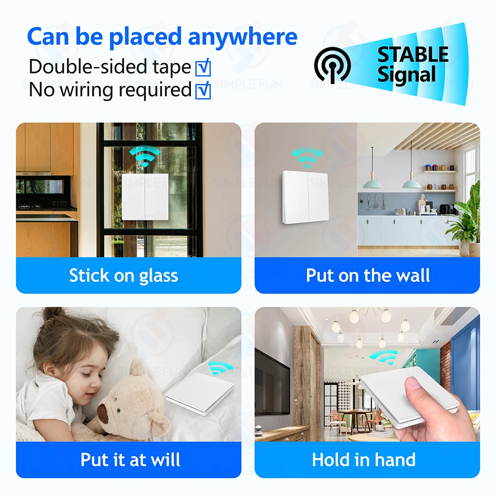 √ Self-powered wireless wall panel switch