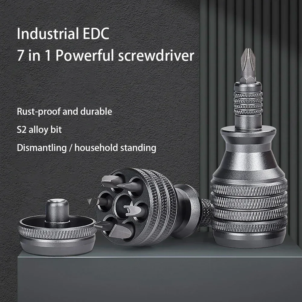 Mini Screwdriver Titanium Screwdrivers 1/4 Inch Magnetic Screwdriver 7 in 1 S2 Alloy Steel Drill Bit EDC Repair Hand Tool
