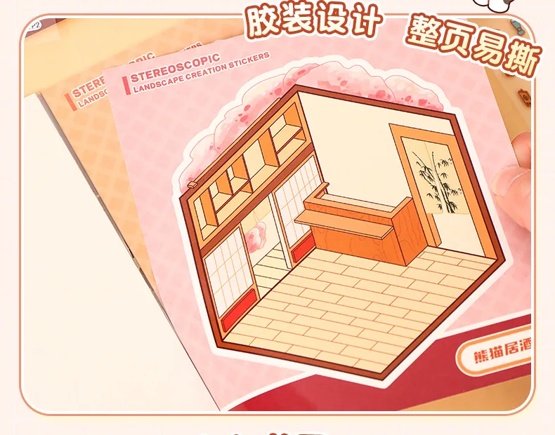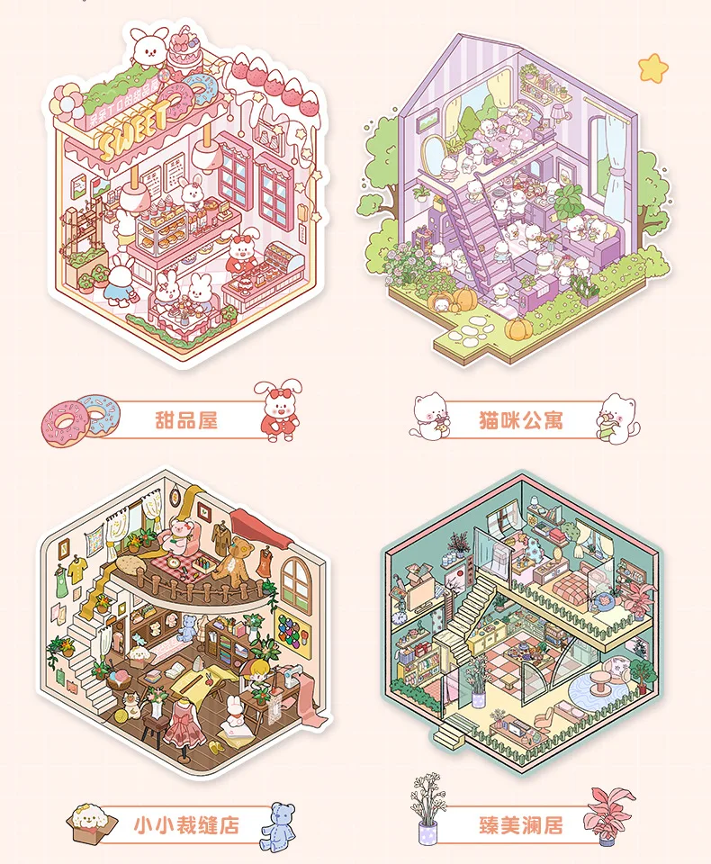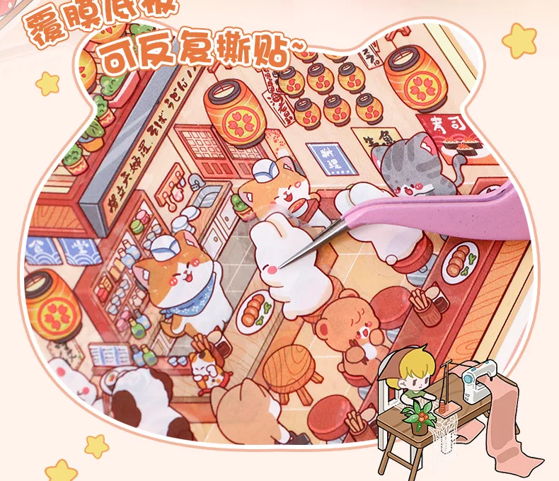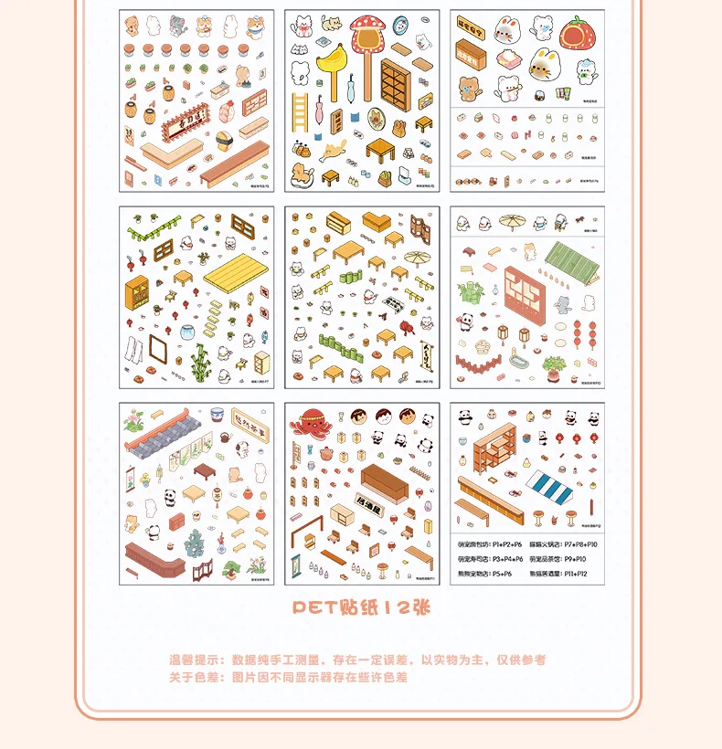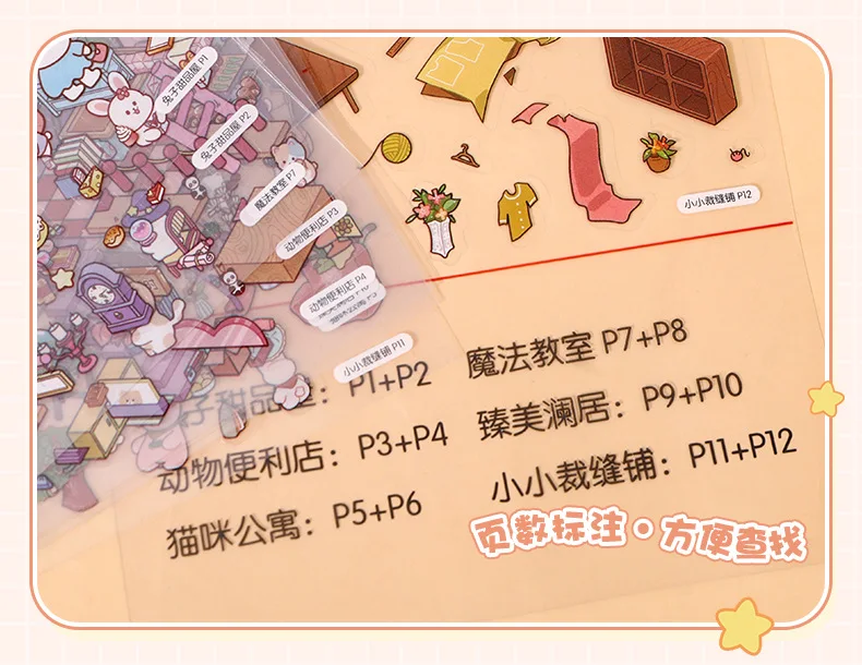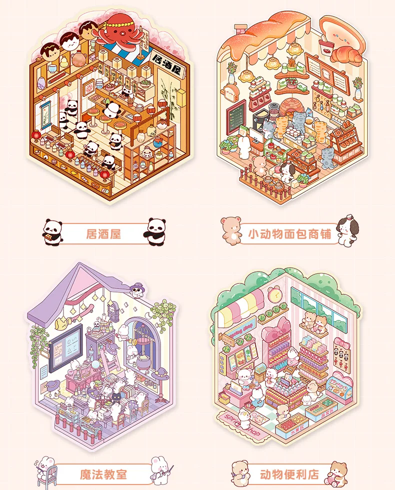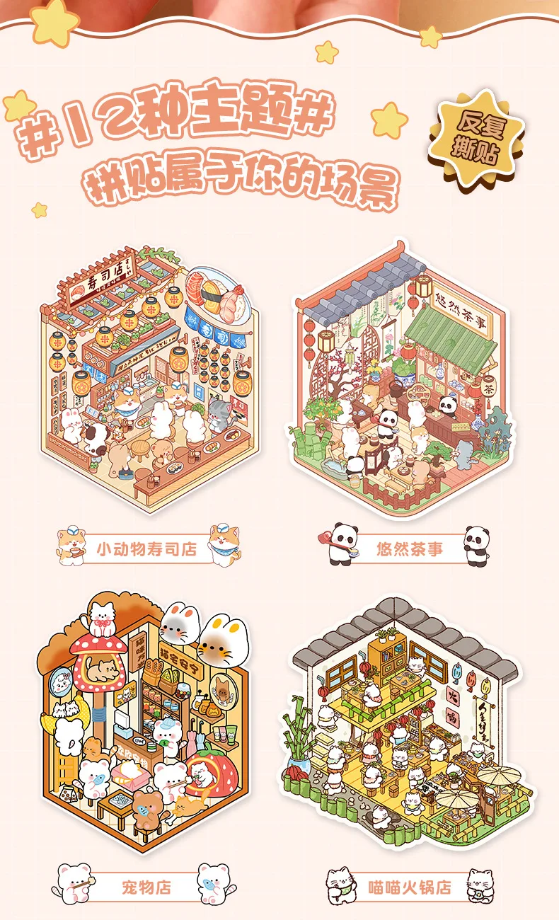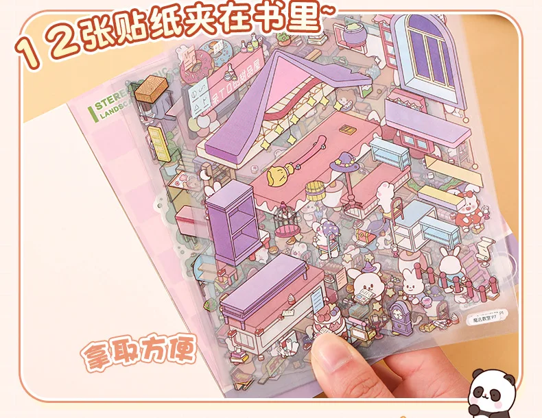 Mini Size 6in1 Cartoon Store Landscape Sticker Collection 2D Scene DIY Toy Game Book Festival Birthday Gift for Kid Child Girl