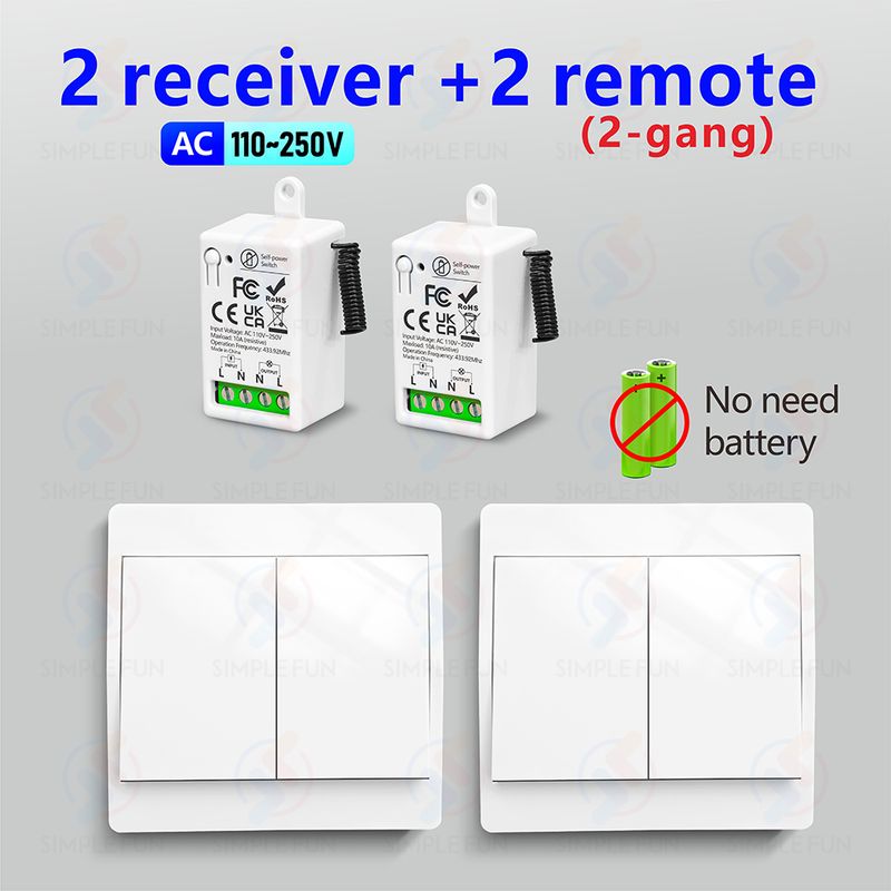 Multiple sets of products can be used at the same location without interfering with each other. One receiver can be used with multiple self-generating wireless panel switches,making it easy to control your devices from different locations.