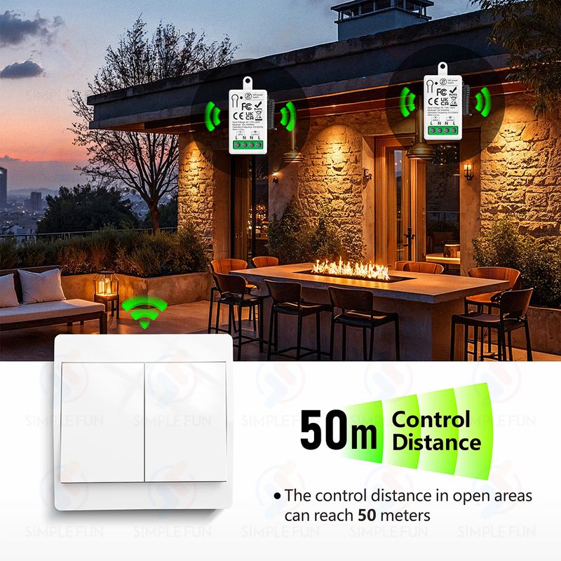 The receiver can be controlled by multiple wireless panels without the need for a network, making it easy to control your devices from different locations,Smarter than traditional control, Simpler and suitable for the elderly.