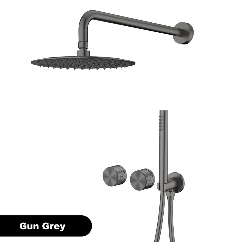 Minimalist brass brushed rose gold wall mounted showerhead. Embedded hot and cold water 2-function bathroom copper mixer