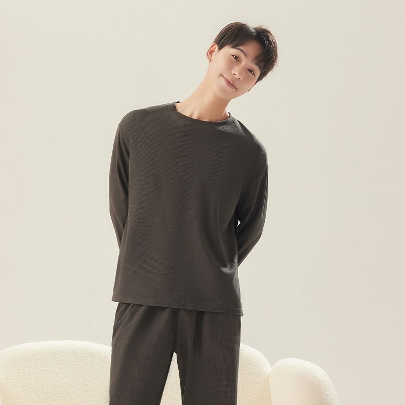 Minimalist Long Sleeve Trousers Loose Leisure Suit Male Dark Gray Male L