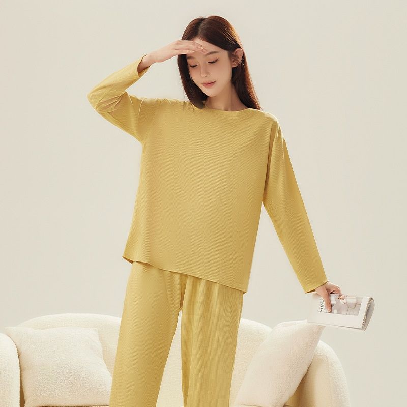 Minimalist Long Sleeve Trousers Loose Leisure Suit Women's Lemon Yellow Female M