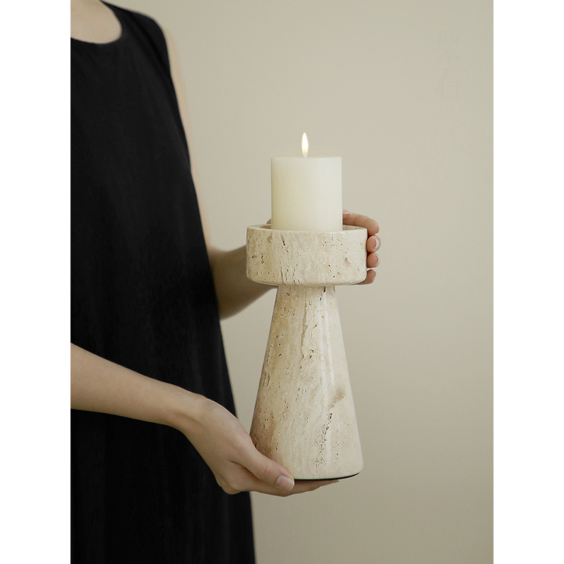 Minimalist Marble Candle Holder for Wedding Party Dinning Vintage Travertine Stone Taper Candlestick Holder for Home Decor