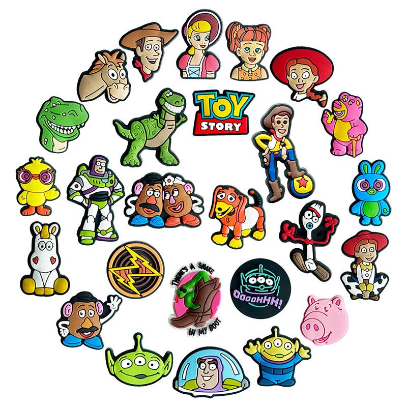 MINISO 26pcs Cartoon Bath Lightyear Shoe Buckle Disney Toy Story Shoe Decoration Shoes Charms Accessories Summer Sandals Clogs
