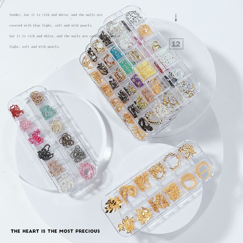 Misscheering 12 Grid Mixed Style Nail Chain Jewelry For DIY Art Decoration Fashion Metal Nails Accessories For Manicure Design