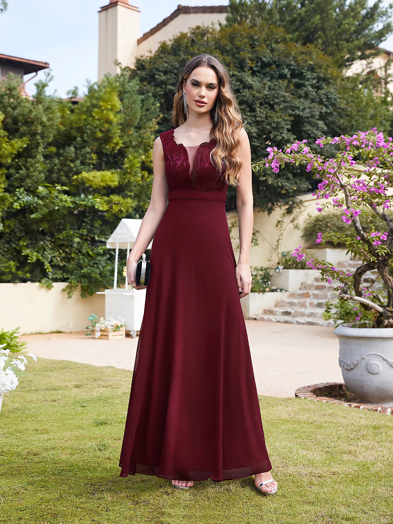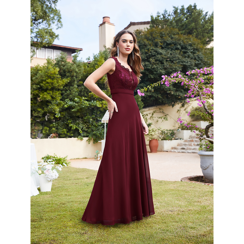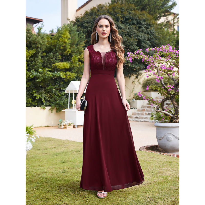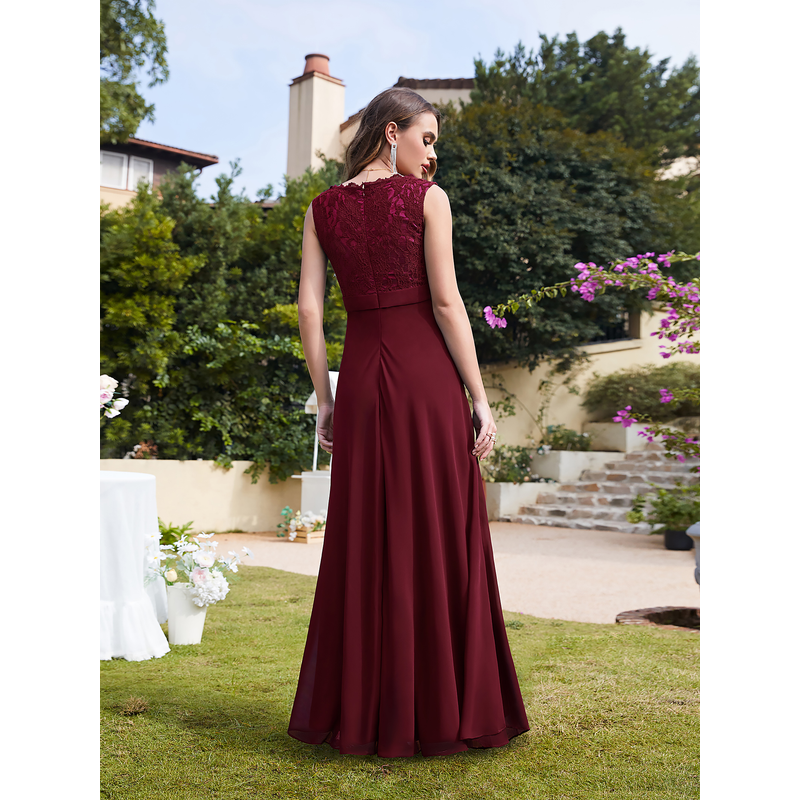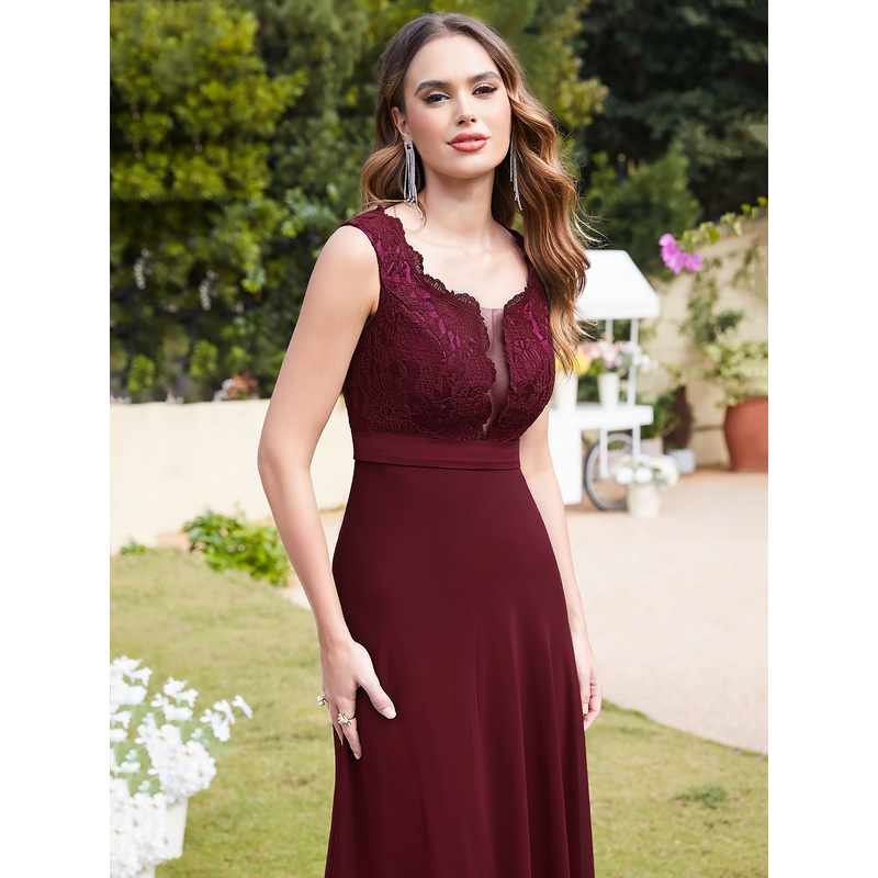 MisShow Lace Appliques Prom Dresses Long Sexy Illusion Chiffon Evening Party Dresses Tank Sleeve Women Dresses for Wedding Guest