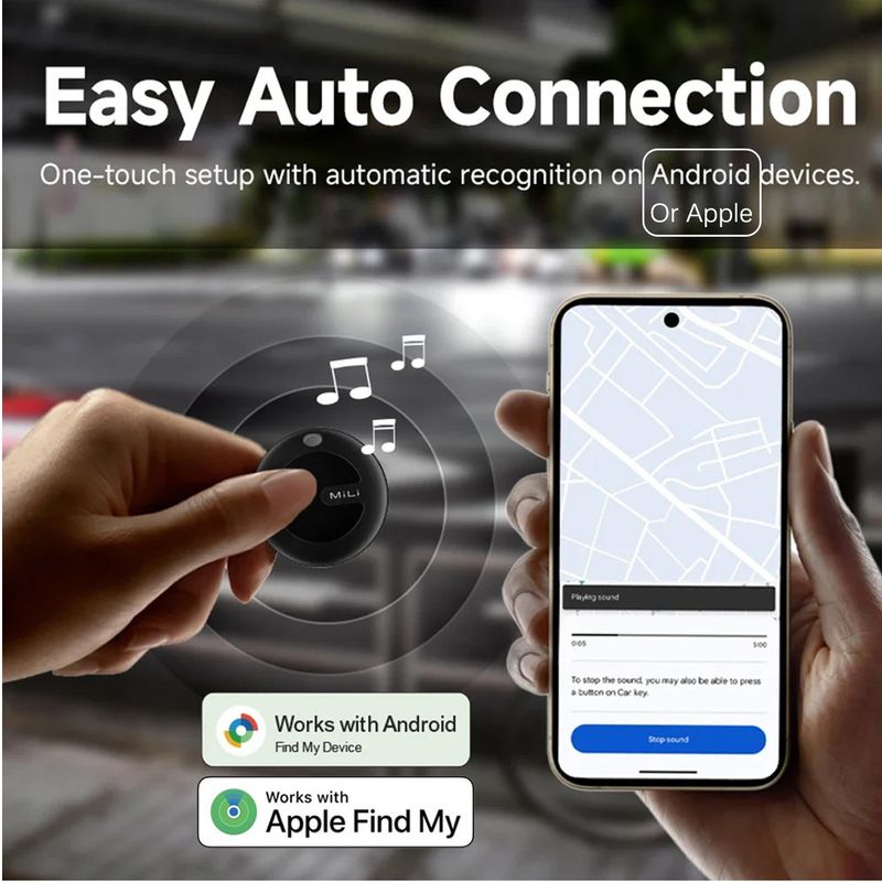 As a dual system Bluetooth tracker, this tag works with iOS Find My App or get paired with Android phones that use Google Find Hub to track your misplaced items.      (Note: It CANNOT be paired with iOS and Android at the same time.)