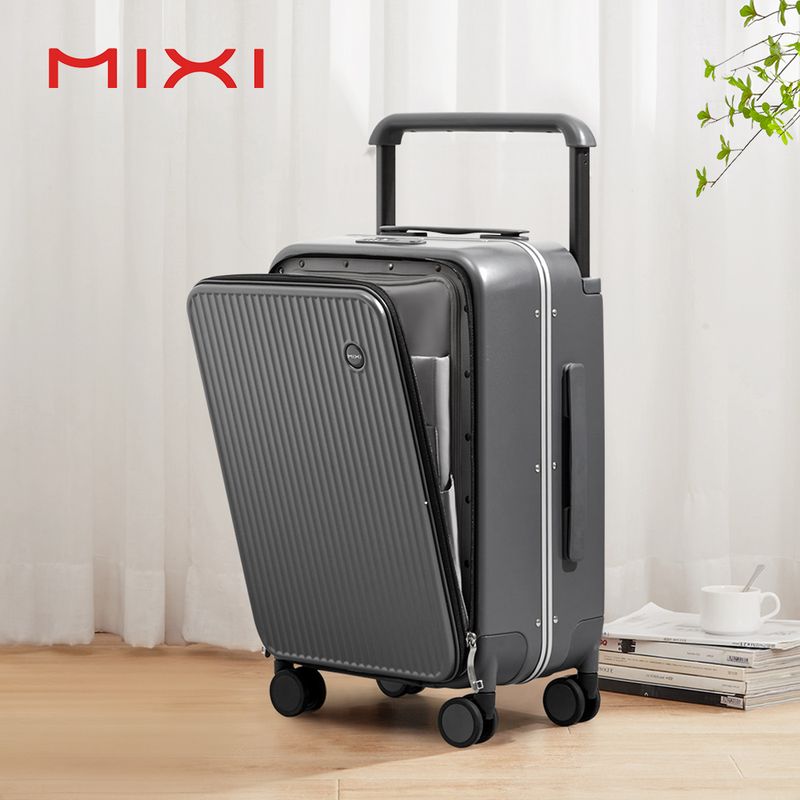 Mixi Front Laptop Pocket Suitcase Wide Handle Travel Suitcase Men 20''Carry-On Luggage Women PC Aluminum Frame Trolley Case 24''
