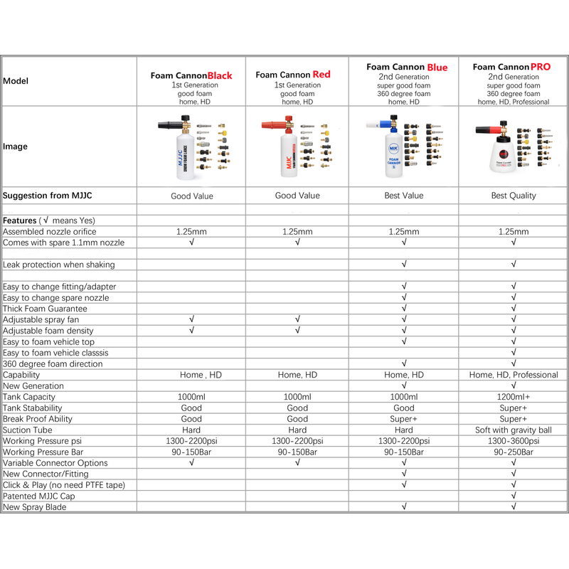Model | Foam Cannon Pro | Easy to foam vehicle top | Yes |