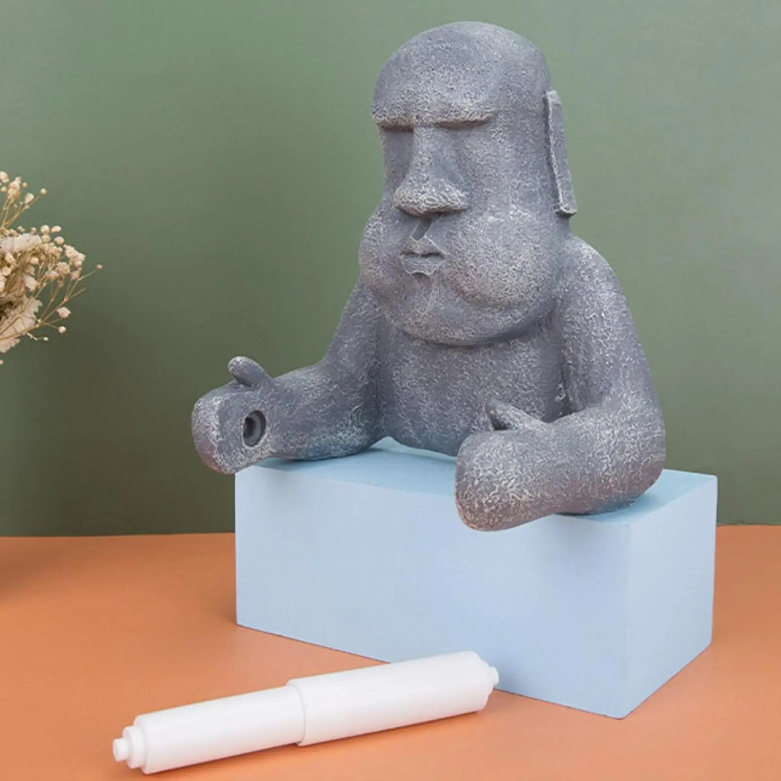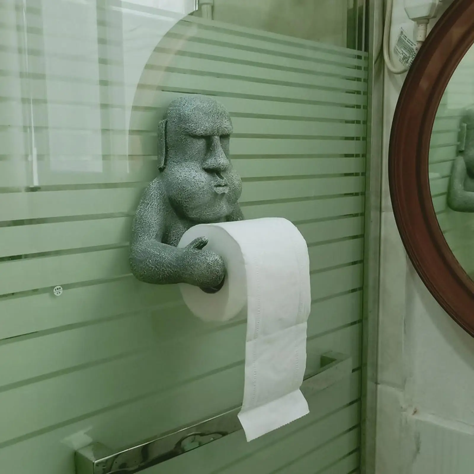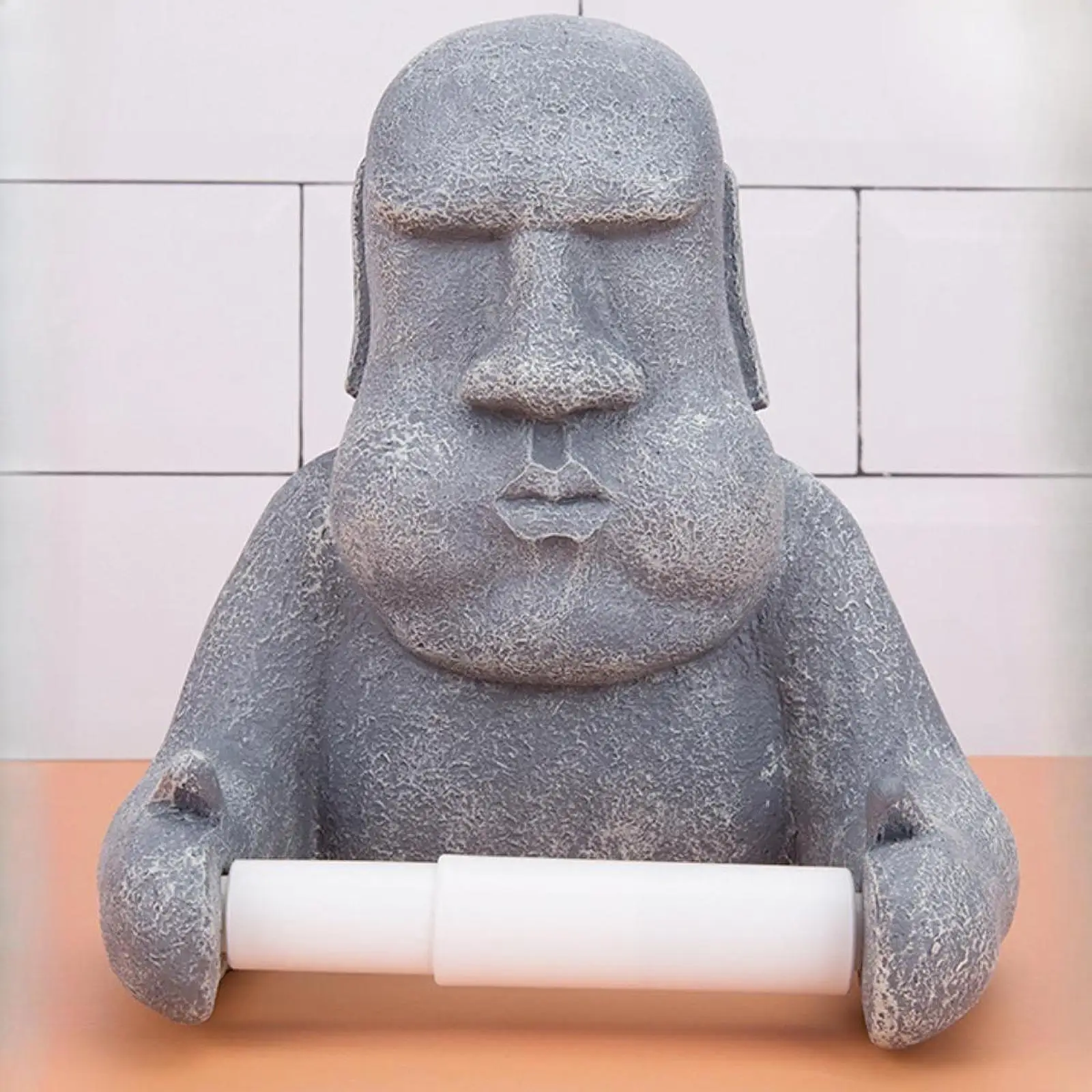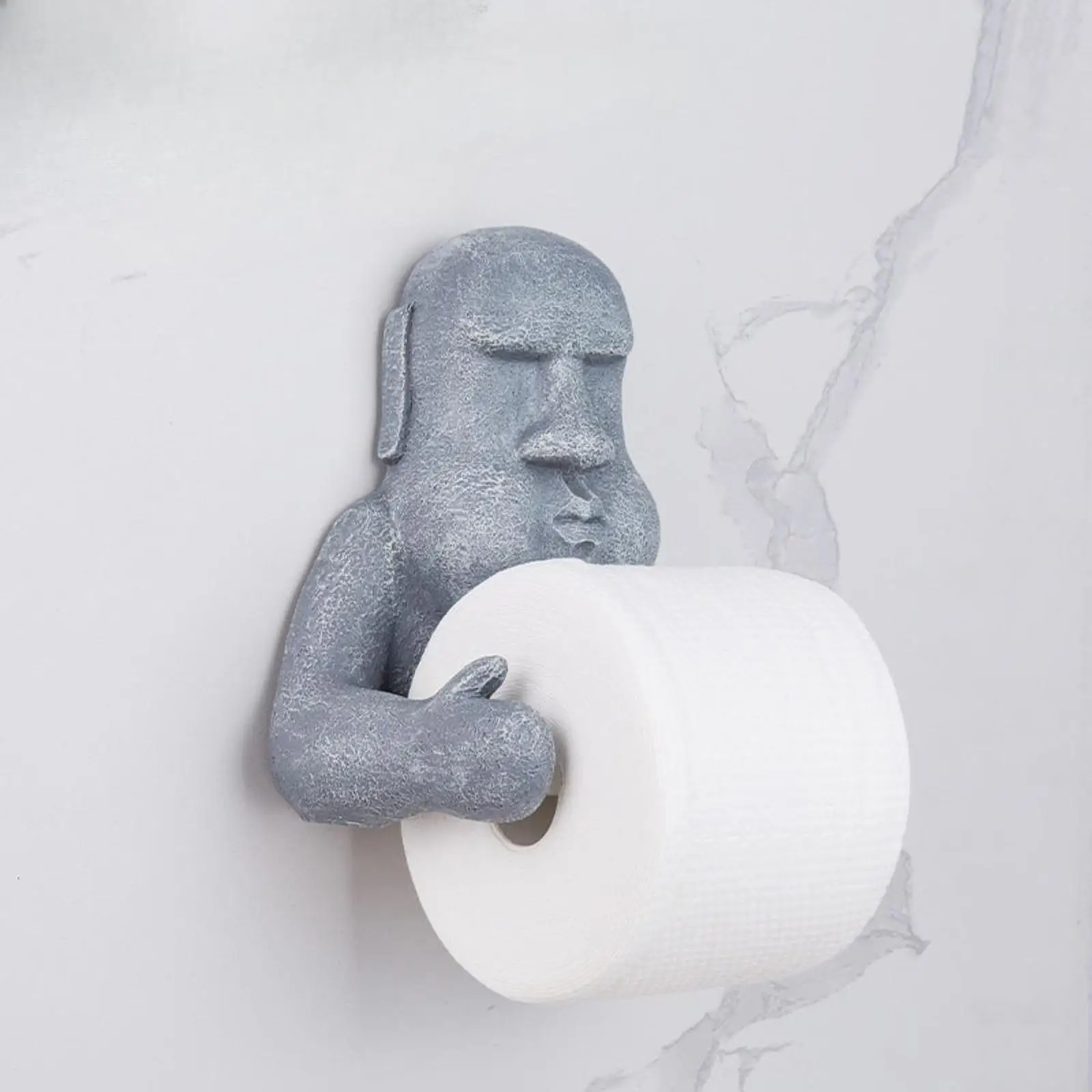 【Unique Design】: This eye catching toilet paper holder features a Moai statue design, adding a touch of humor and intrigue to any bathroom decor. It's both practical and fun, making it a standout piece in your home