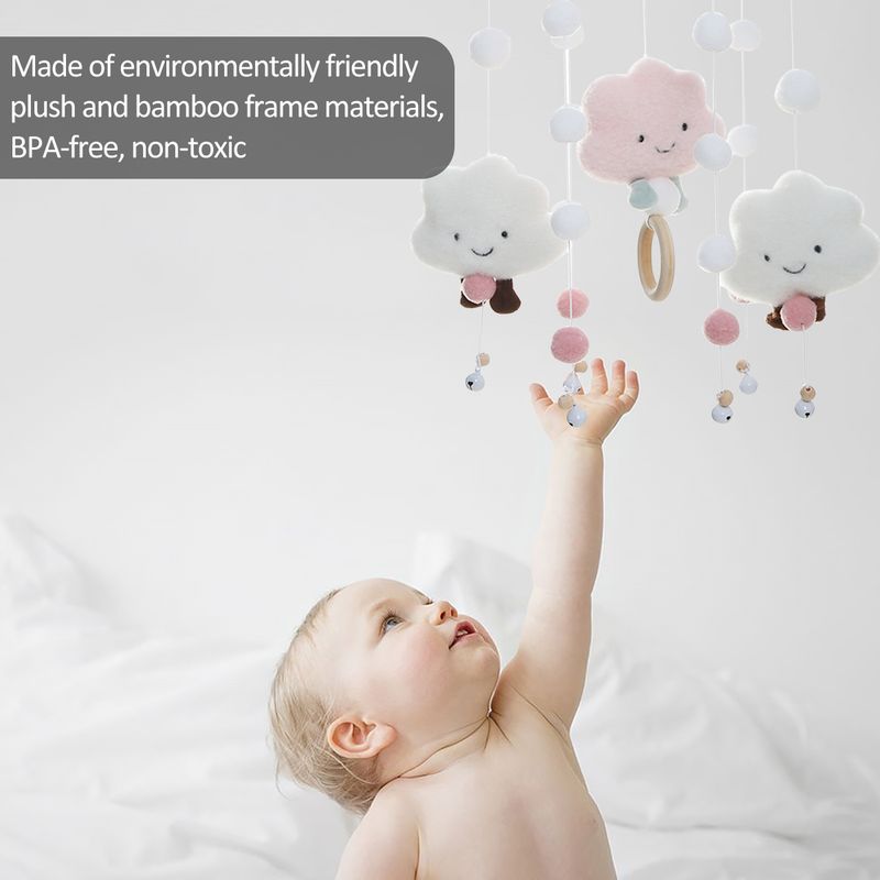 【Safe Plush Material】:The mobile rattle bell is made of eco-friendly plush and bamboo materials, BPA-free, safe and non-toxic, no hair loss and discoloration, smooth texture, and no irritation to the baby's skin.
