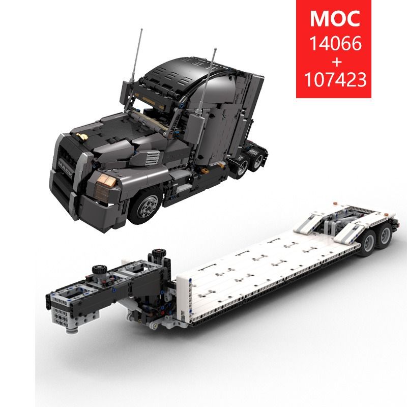 MOC-14066 & MOC-107423 Modified Truck Head & Gooseneck Semi-Trailer Combination Model Electric Remote Control DIY Toy Gift