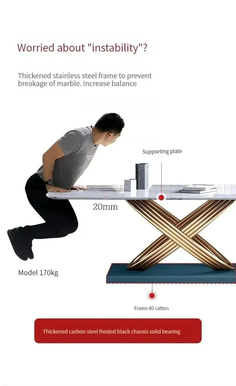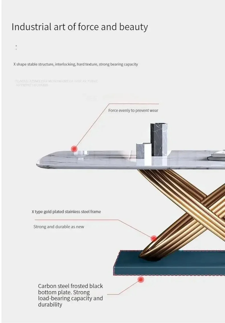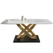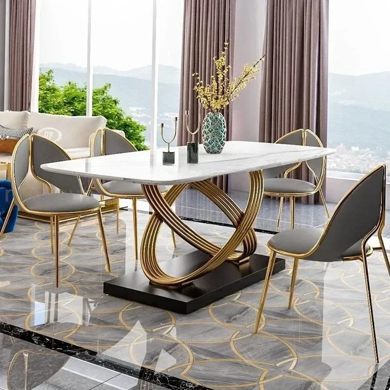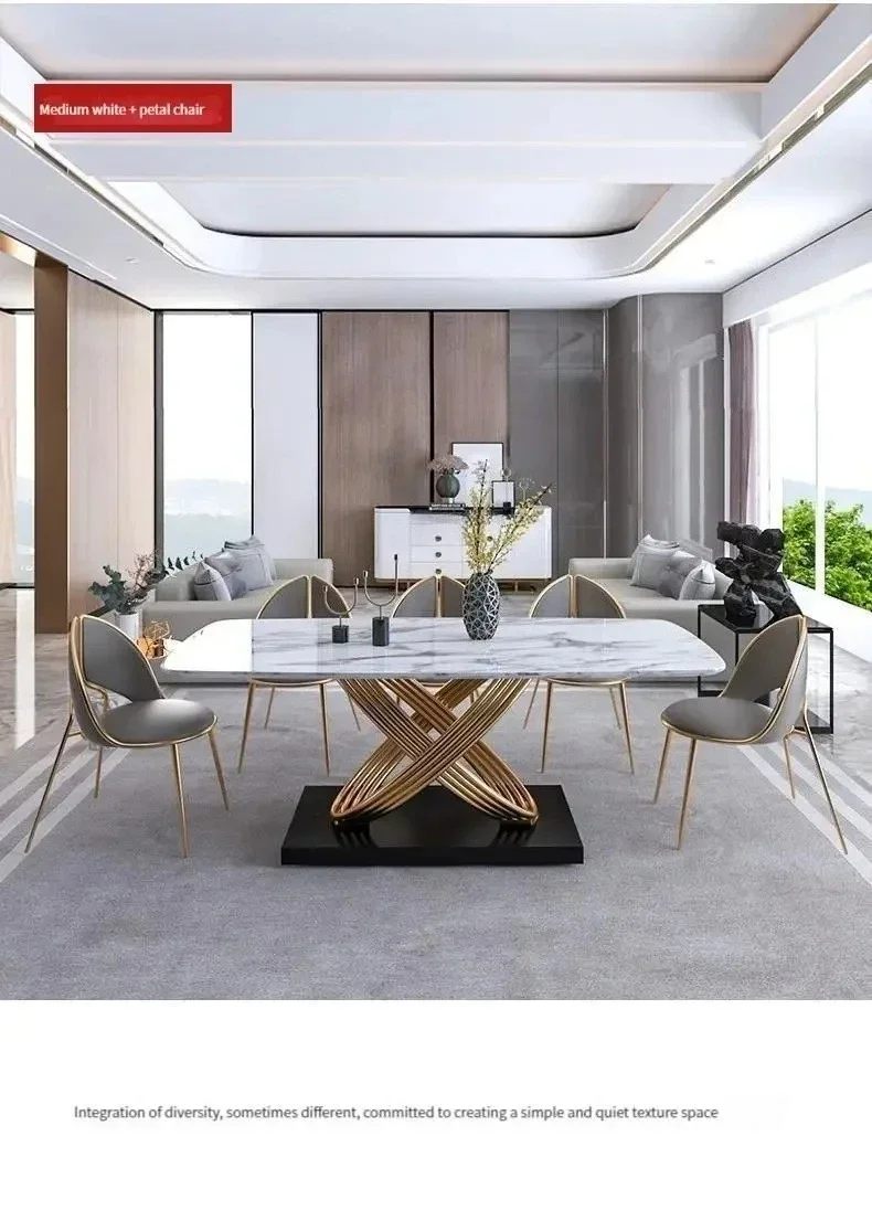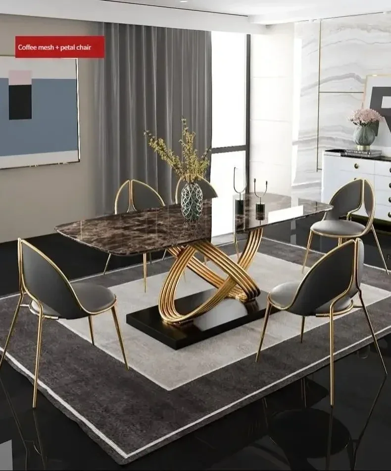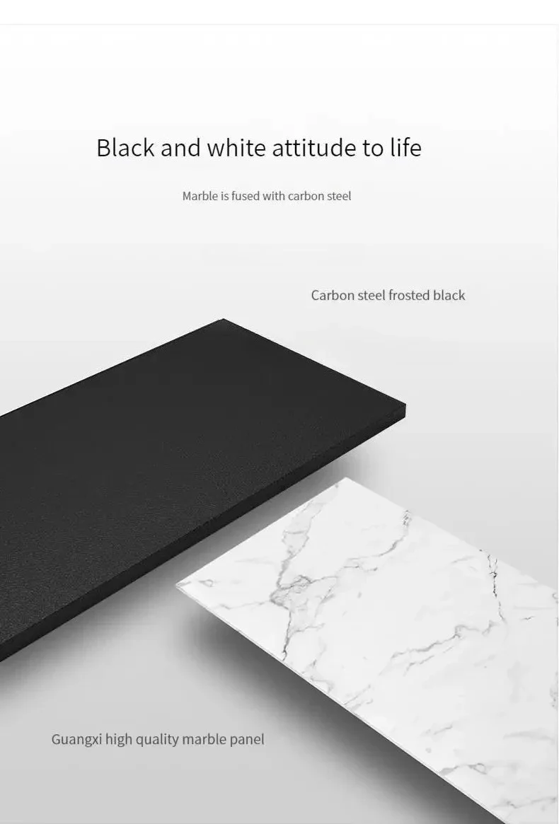 Modern Dining Table With Stainless Steel Finish Black White Desk Top For Six People Home Rectangle Luxury Marble Kitchen Table