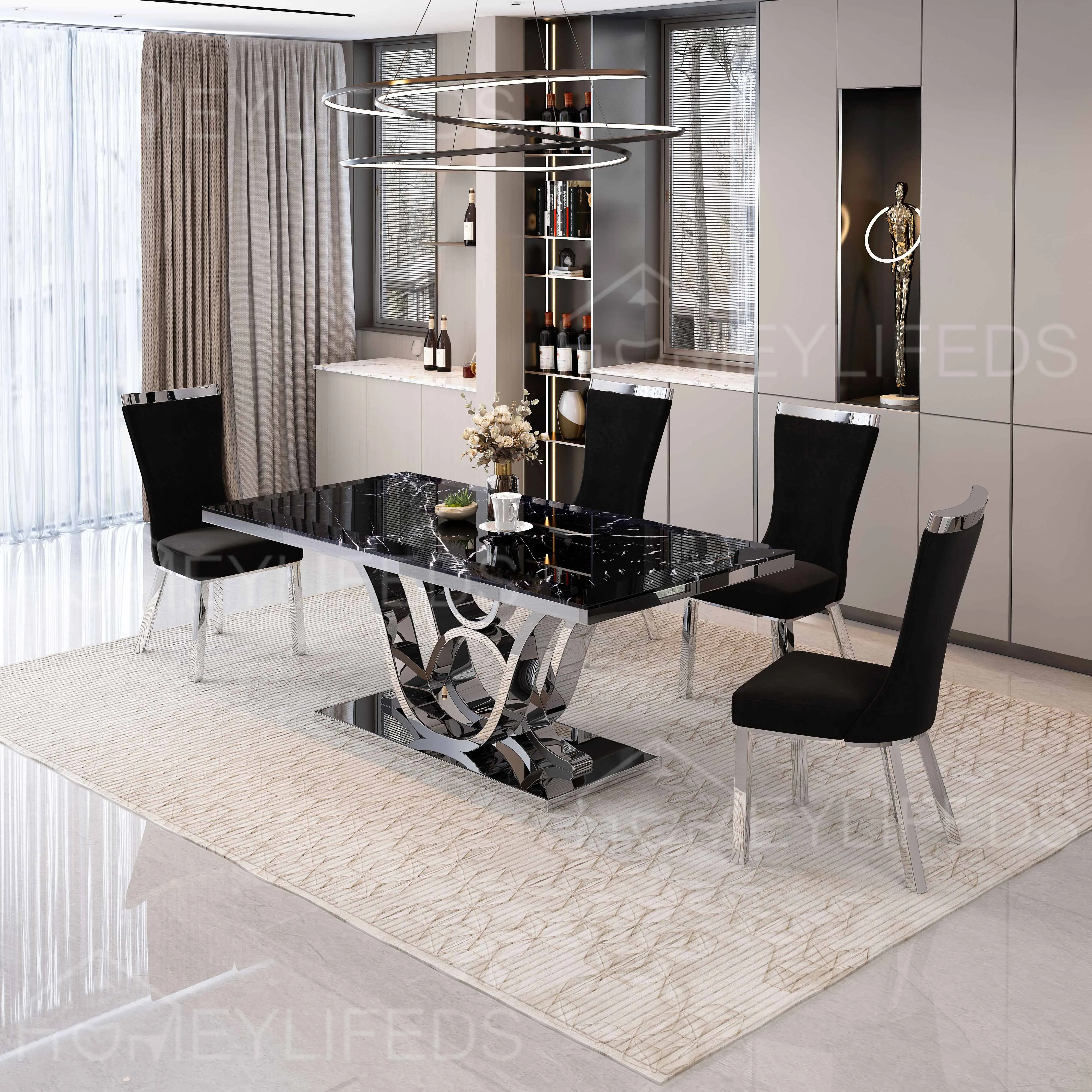 Material Marble top with silver chrome stainless steel base