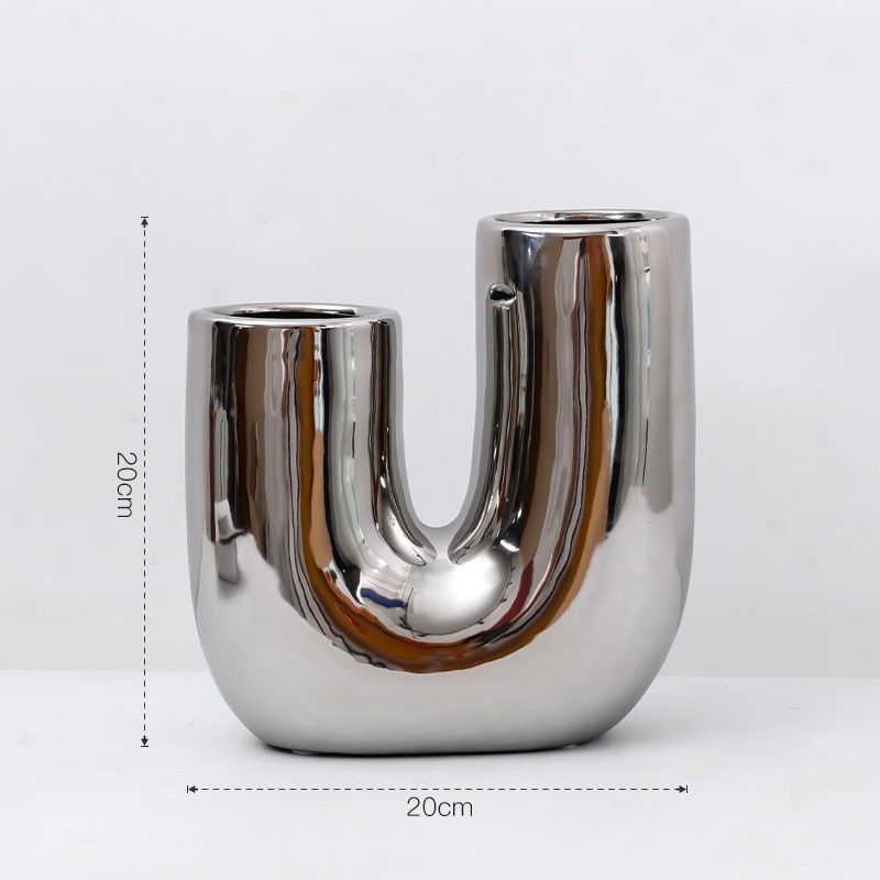 Modern Light Luxury Irregular Silver Plated Ceramic Vase Electrosilver314