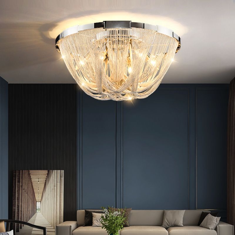 Modern Luxury Tassel Aluminum Chain Bedroom Lamp Nordic Creativity Silver 120x55cm warm light