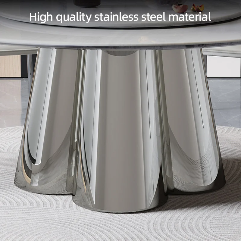Reflective Stainless Steel Base: Mirror-polished stainless steel base gives a luxurious, modern touch that enhances the look of any dining room.