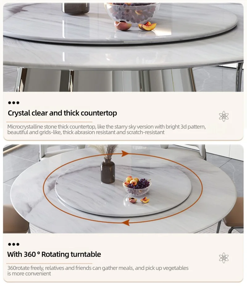 Elegant Durable Dining Table with Stainless Steel Base Modern Luxury Restaurant Hotel Table with Rotating Tray Round Dining Room Kitchen Tables