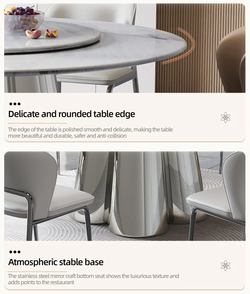 Durable Stainless Steel Base: The sturdy, rust-resistant stainless steel base offers exceptional strength and support, adding stability and luxury to your dining experience.