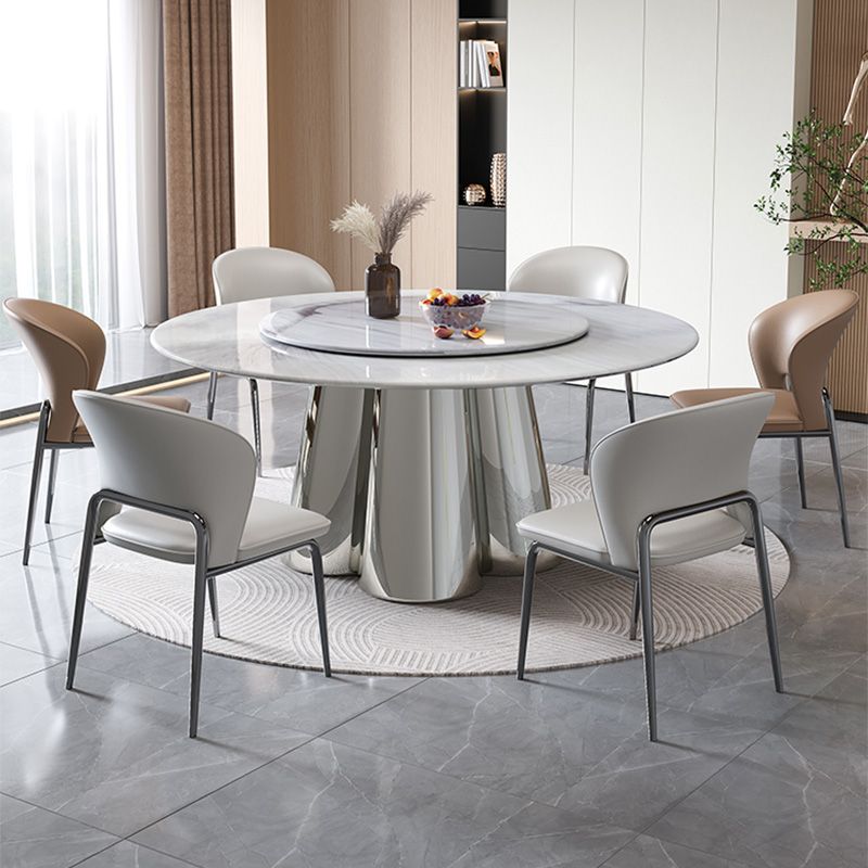 Modern Restaurant Kitchen Table with Stainless Steel Base Round Dining Room Table Durable Luxury Dining Table with Rotating Tray
