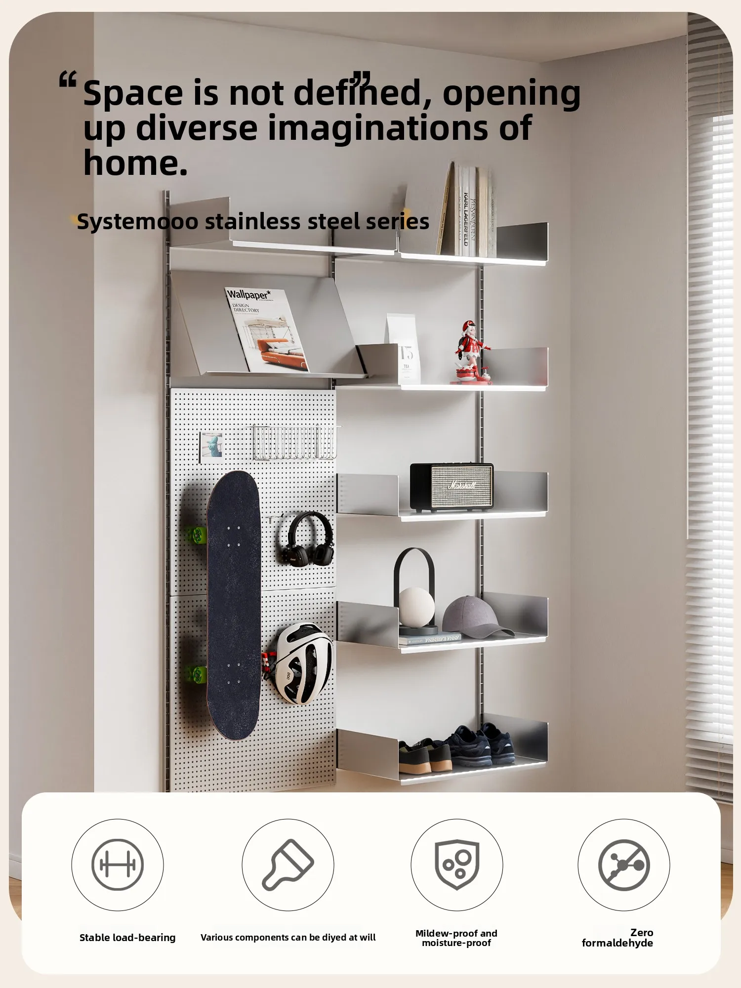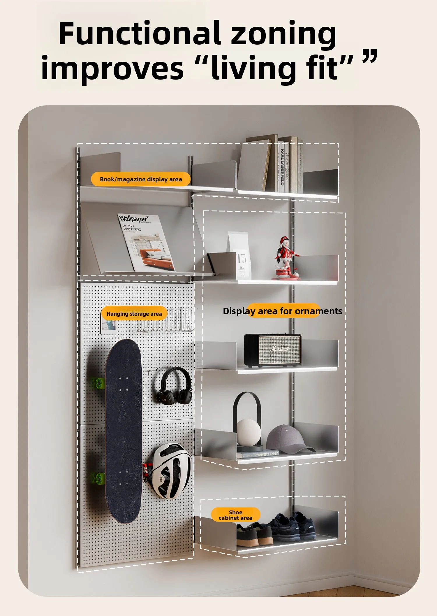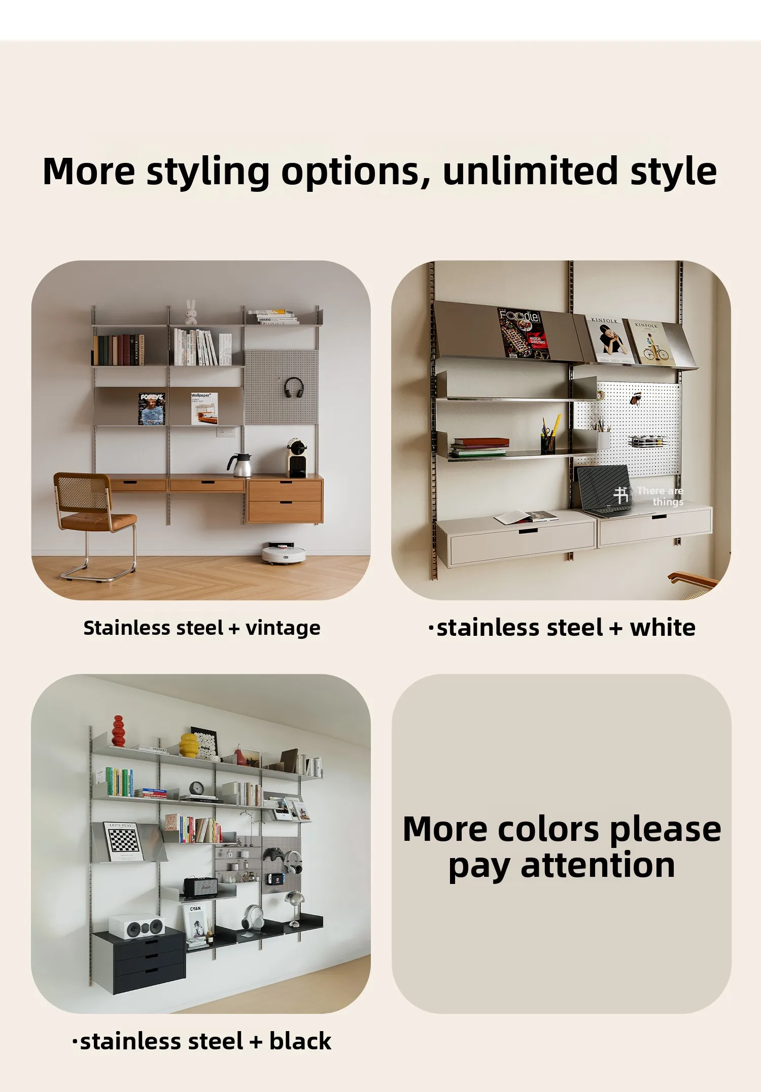 Modular Storage Shelf Stainless Steel DIY Bookcase for Living Room Space Saving Display Organizer Wall Mounted Showcase System